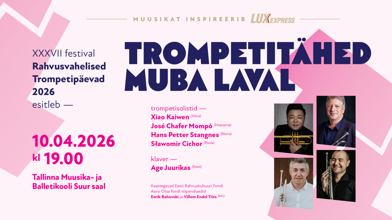 37. Rahvusvahelised Trompetipäevad. KONTSERT "TROMPETITÄHED MUBA LAVAL". Virtuoosid Hiinast, Norrast, Hispaaniast ja Poolast