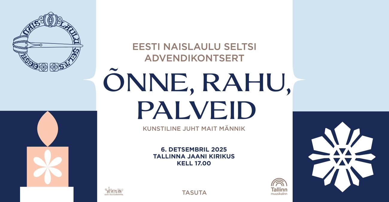 Eesti Naislaulu Seltsi naiskooride advendikontsert "Õnne, rahu, palveid" toimub 6. detsembril 2025 Tallinna Jaani kirikus, algusega kell 17.00.