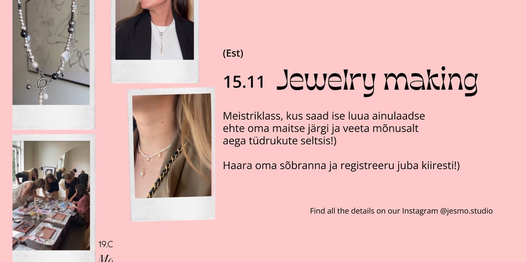 😊(Meistriklassis koha broneerimiseks tehke ettemakse 20€ inimese kohta, Lisatasu on juba läbi viidud otse meistriklassis sularahas)