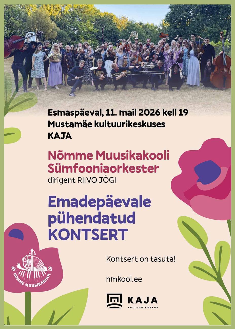 Nõmme Muusikakooli Sümfooniaorkester korraldab dirigent Riivo Jõgi juhendamisel 11. mail Kaja Kultuurikeskuses emadepäevale pühendatud kontserdi!