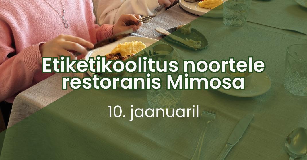 Koolitab etiketiõpetaja Erika Kolbakov Etiketisalongist. Piduliku lõunasöögi valmistab ja mõnusa meeleolu loob restoran Mimosa.