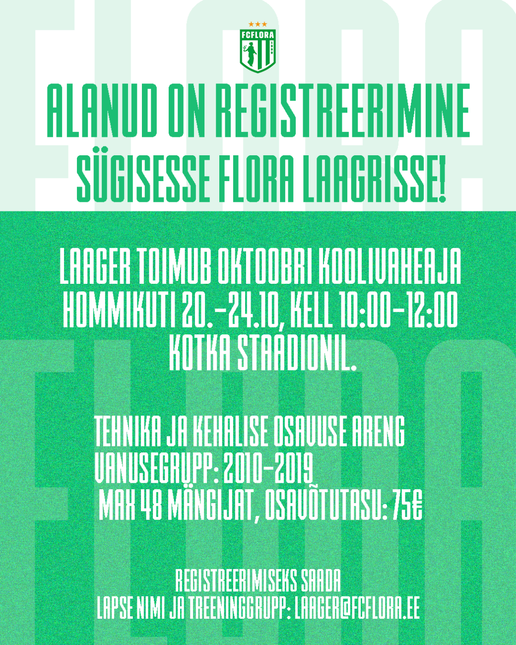 FC Flora sügisvaheaja hommikulaager on hea võimalus veeta koolivaheaeg jalgpalli mängides. Laager keskendub mängijate tehnilise meisterlikkuse ja kehalise osavuse arendamisele ning plaanis on mitmeid lõbusaid mänge.