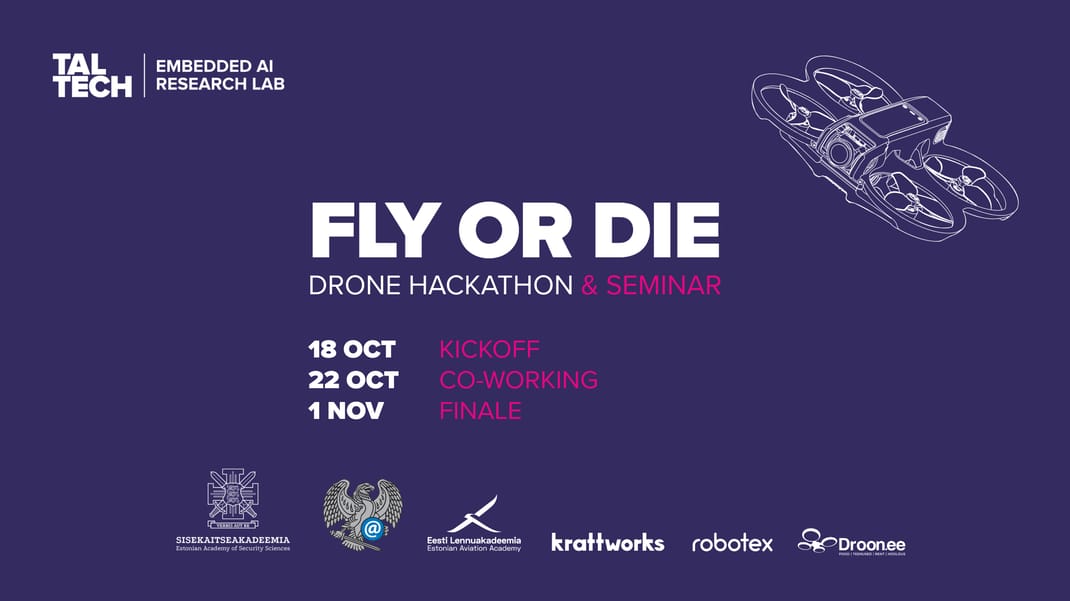 Droonitehnoloogia areneb kiiremini kui kunagi varem – ja see on sinu võimalus sellest osa saada. Fly or Die on droonihäkaton ja seminar, mis toob kokku üliõpilased, teadlased ja tööstuse, et luua, testida ja tutvustada reaalseid lahendusi.