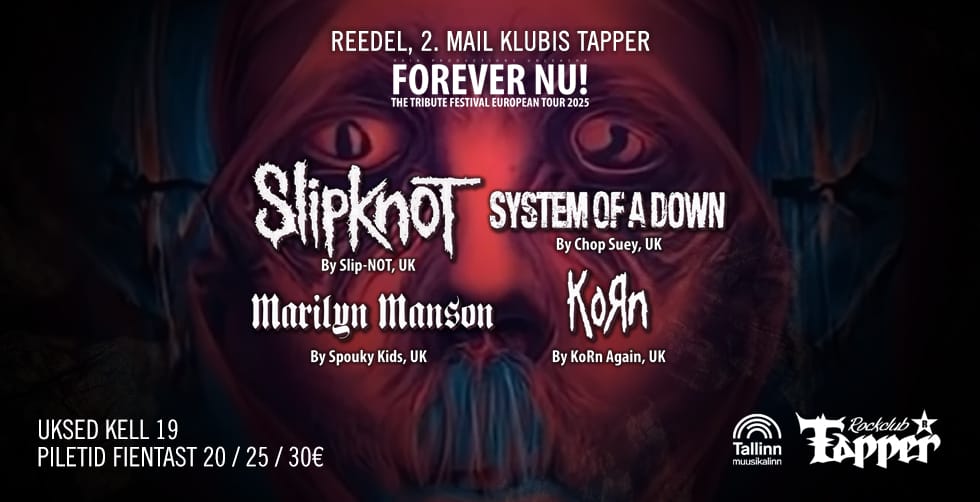 Neli tunnustatud briti bändi kaverdavad Slipknoti, Marilyn Mansoni, System of a Downi ja Korni aegumatuid lugusid! Forever NU! on kevade kõige kõvem NU-metali pidu!