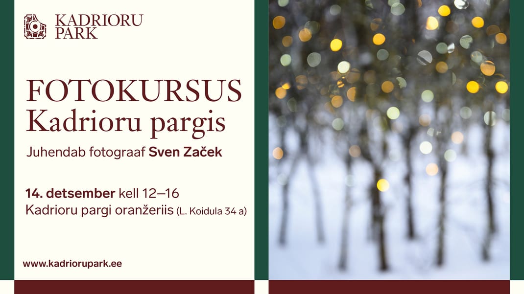 Just seepärast toimubki Kadrioru pargis 14. detsembril fotokoolitus, kus käime läbi igahaljad põhitõed ja läheme neid seejärel parki kunsti vankri ette rakendama.