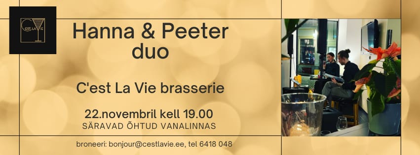 Taaskord kutsume nautima meedivat õhtut hea söögi, seltskonna ja muusikaga vanalinna, C'est La Vie brasserie'sse.