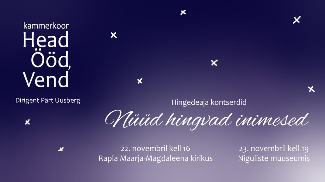 Oled oodatud Kammerkoori Head Ööd, Vend traditsioonilisele hingedeaja kontserdile 23. novembril kell 19 Niguliste muuseumis.