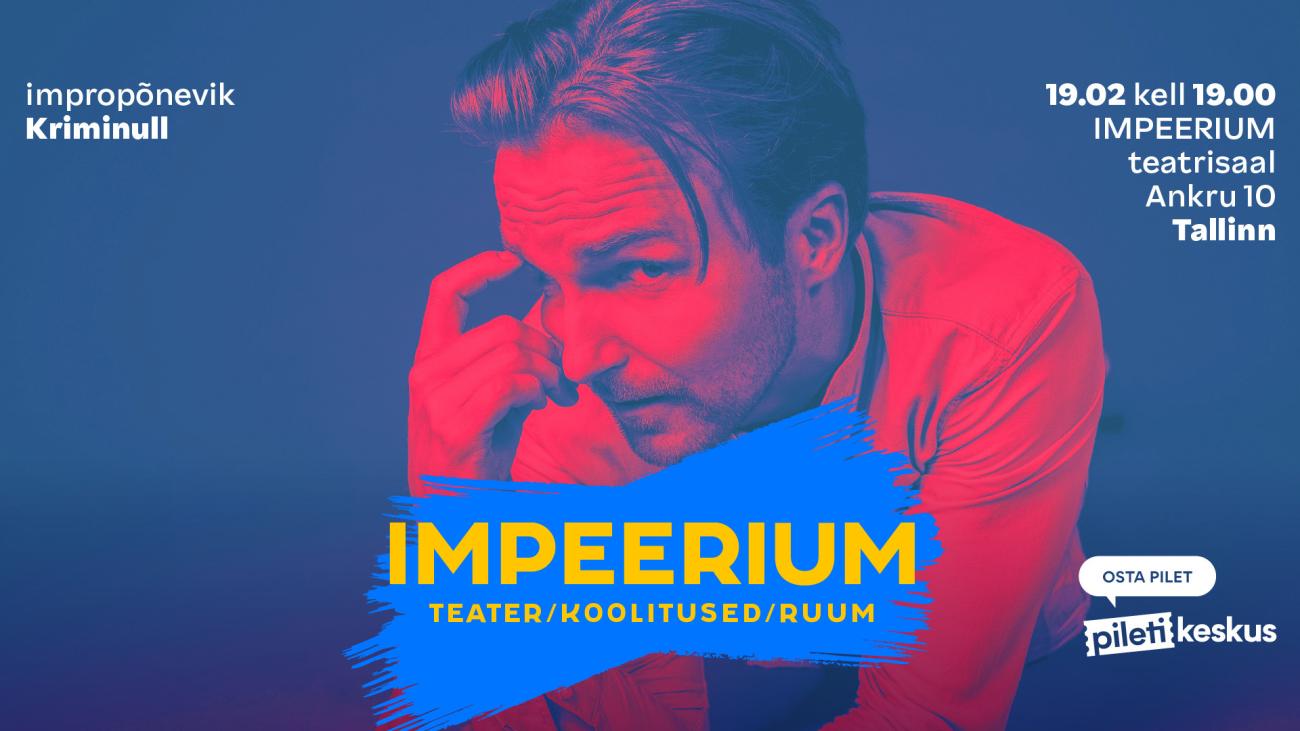 IMPEERIUM improteater avab uue peatüki – lavale jõuab täiesti kriminaalselt värske formaat, mille keskmeks on üks kuritegu, selle uurimine ja lahendus. Selles formaadis kohtuvad krimikirjanduse põnev süžee ja improteatri spontaansus. Etenduse fookus on selge – kogu lugu keerleb ümber kurikaela paljastamise.