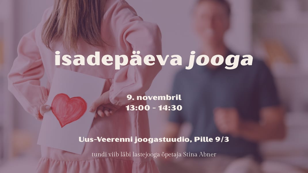 Isadepäev on ilus võimalus pühendada see päev iseendale ja lapsele. Teha midagi teistmoodi, teha hingele pai. Kutsun sind, armas isa, isadepäeva joogatundi, kus fookus on ühendusel, mängulisel liikumisel ja kohalolul.