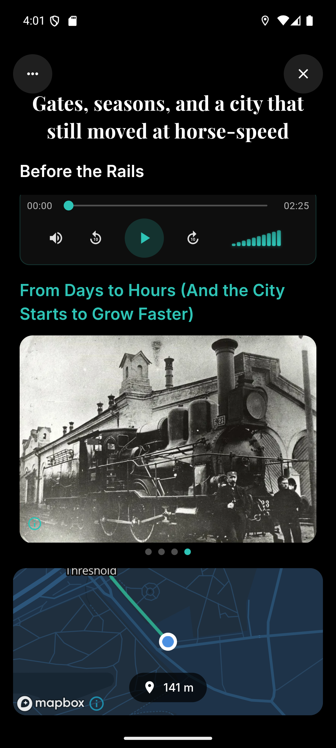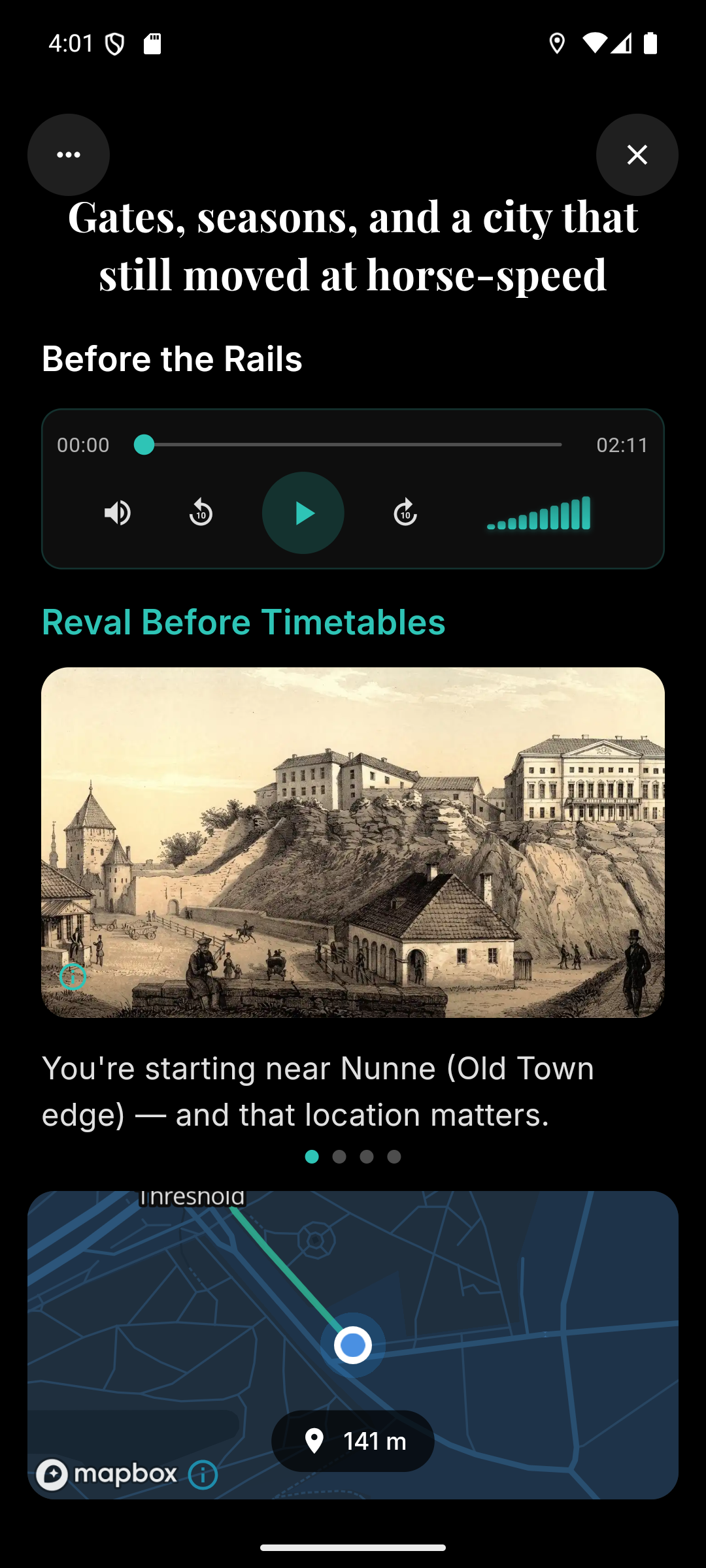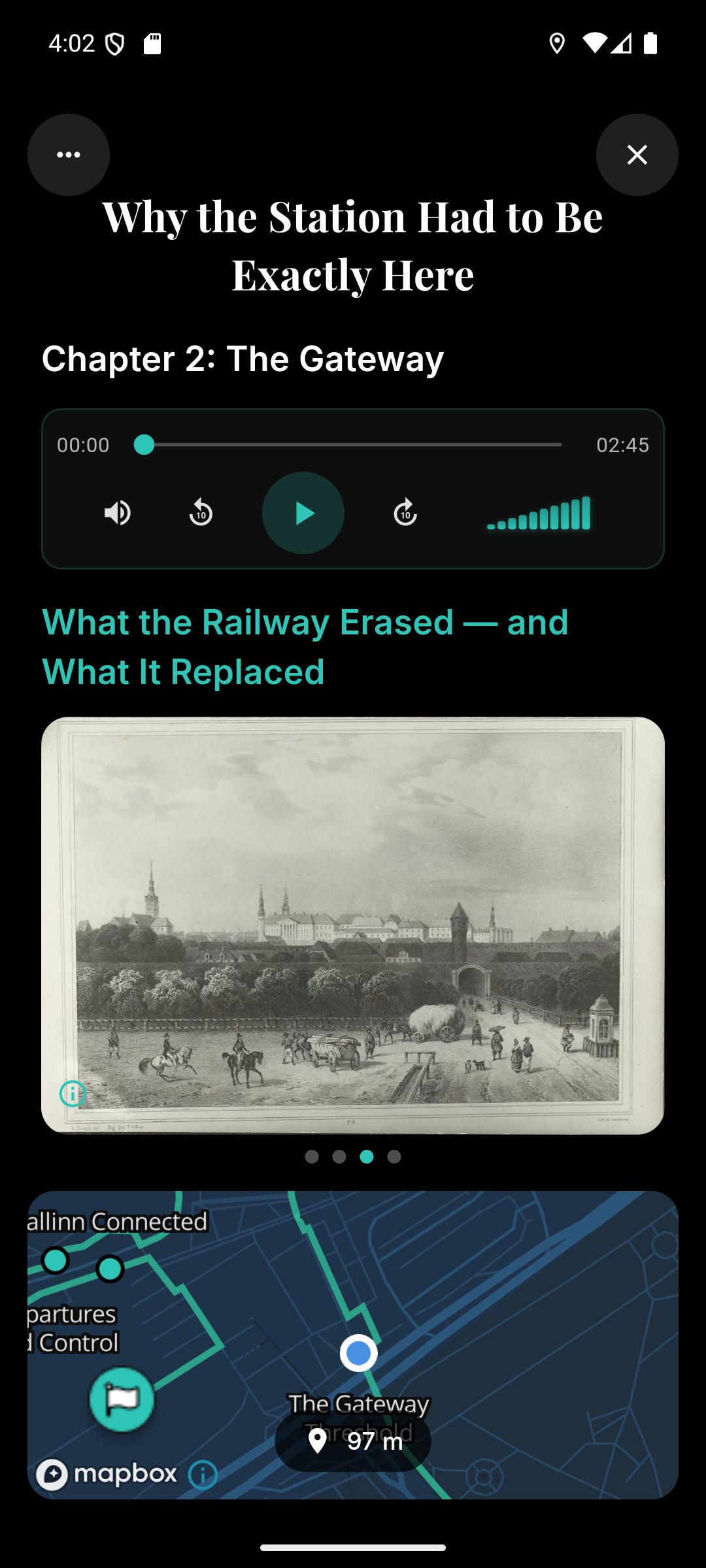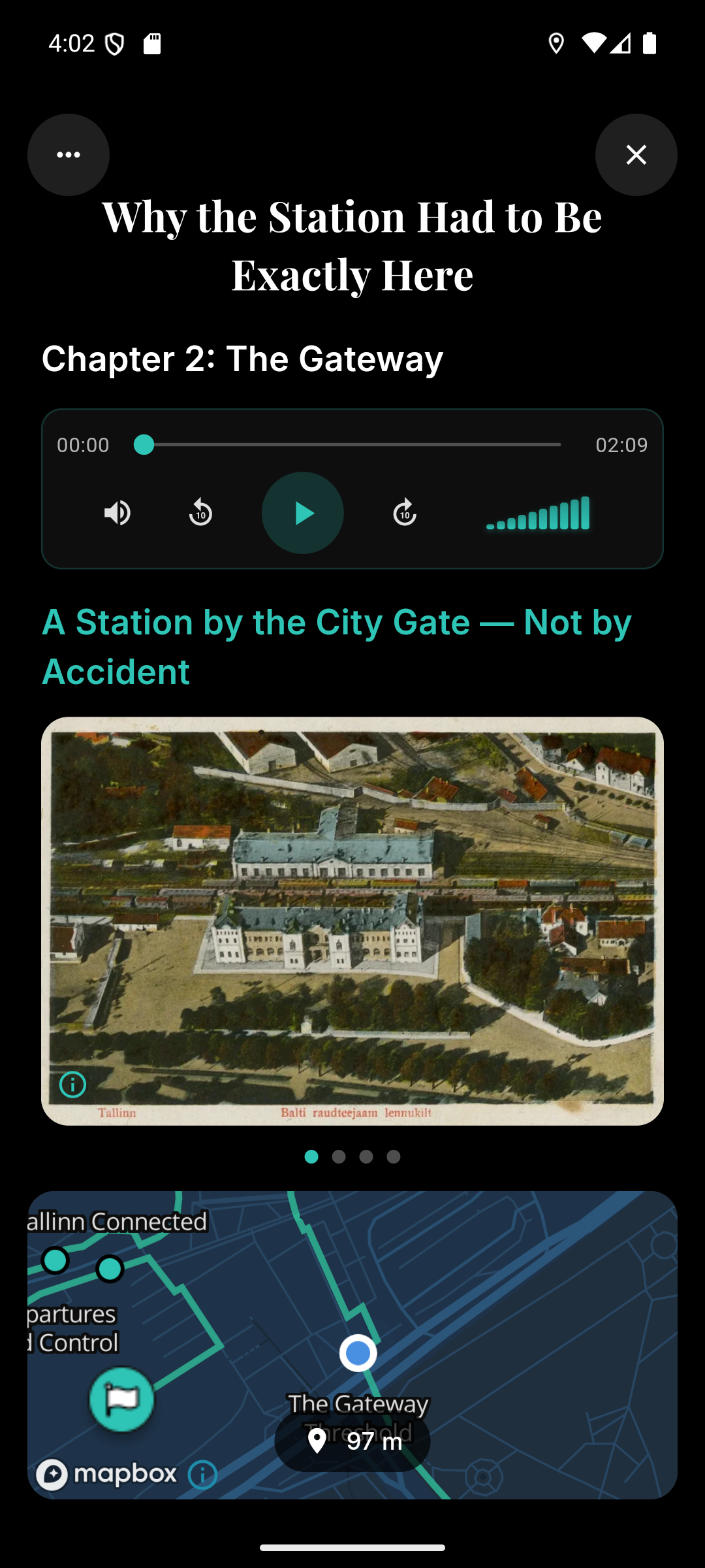 See on “ekskursioon telefonis”: avad marsruudi kaardil, jalutad omas tempos ja teekonna punktides ilmuvad lühikesed lood, pildid ja audio.
