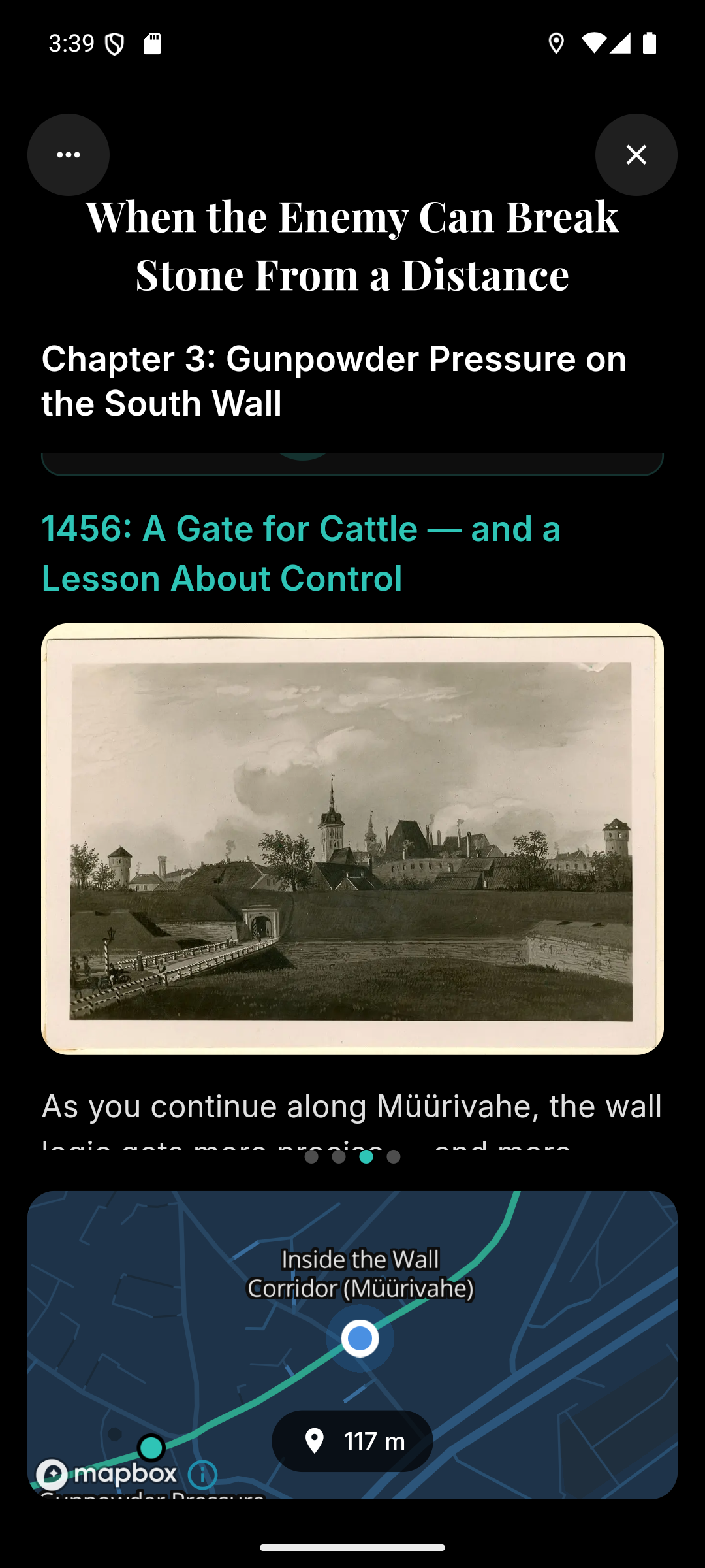 See on “ekskursioon telefonis”: avad marsruudi kaardil, jalutad omas tempos ning teekonna punktides ilmuvad lühikesed lood, pildid ja audio.
