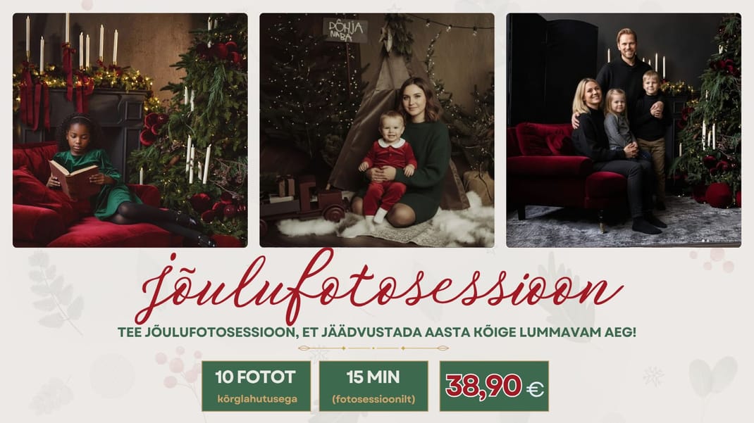 Sel pühadehooajal astu sisse meie kaunilt kaunistatud stuudiosse ja jäädvusta perehetki, mis on täis soojust, rõõmu ja pidulikku meeleolu! Meie jõulude minipildistamine on ideaalne viis luua hinnalisi mälestusi, mis kestavad kaua pärast seda, kui kaunistused on kokku pakitud.