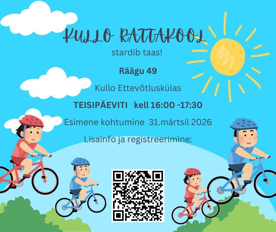 Tallinna Huvikeskuse Kullo ettevõtluskülas (Räägu 49) algavad alates 31. märtsist jalgrattakoolitused lastele ja noortele.