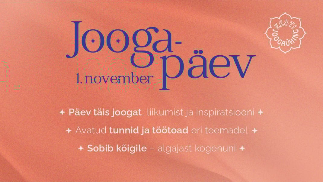 Eesti Joogaühing korraldab 1. novembril Tallinnas Pääsküla koolis joogapäeva. Tule ja lase joogal ennast kõnetada just Sulle vajalikul viisil. Oodatud on nii uued huvilised, harrastajad kui ka pikaaegsed praktiseerijad.