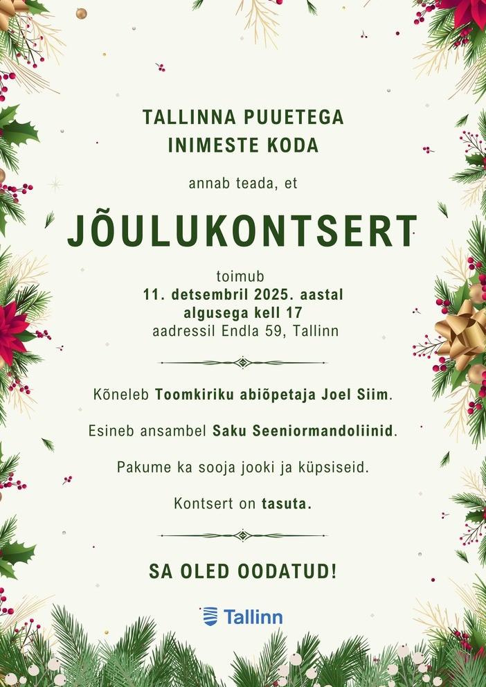 Sel neljapäeval toimub Tallinna Puuetega Inimeste Kojas jõulukontsert!
