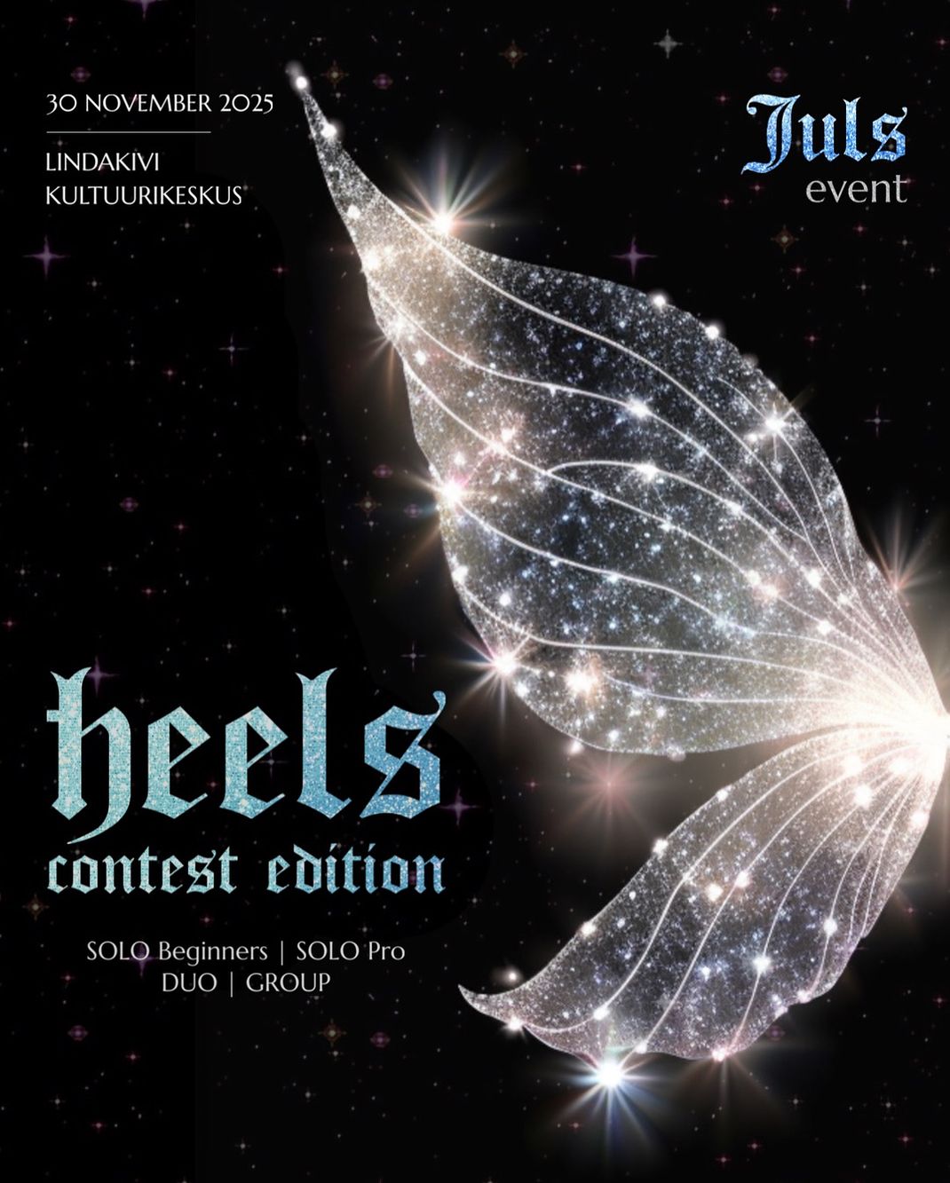 Juls Event - Contest Edition, a competition format event, including Solo, Duo, Groups categories, where participants compete for the title of the best Heels dancers in Estonia. We are waiting for everyone interested to enjoy and be the first to see who will become the best heels dancer in the country!