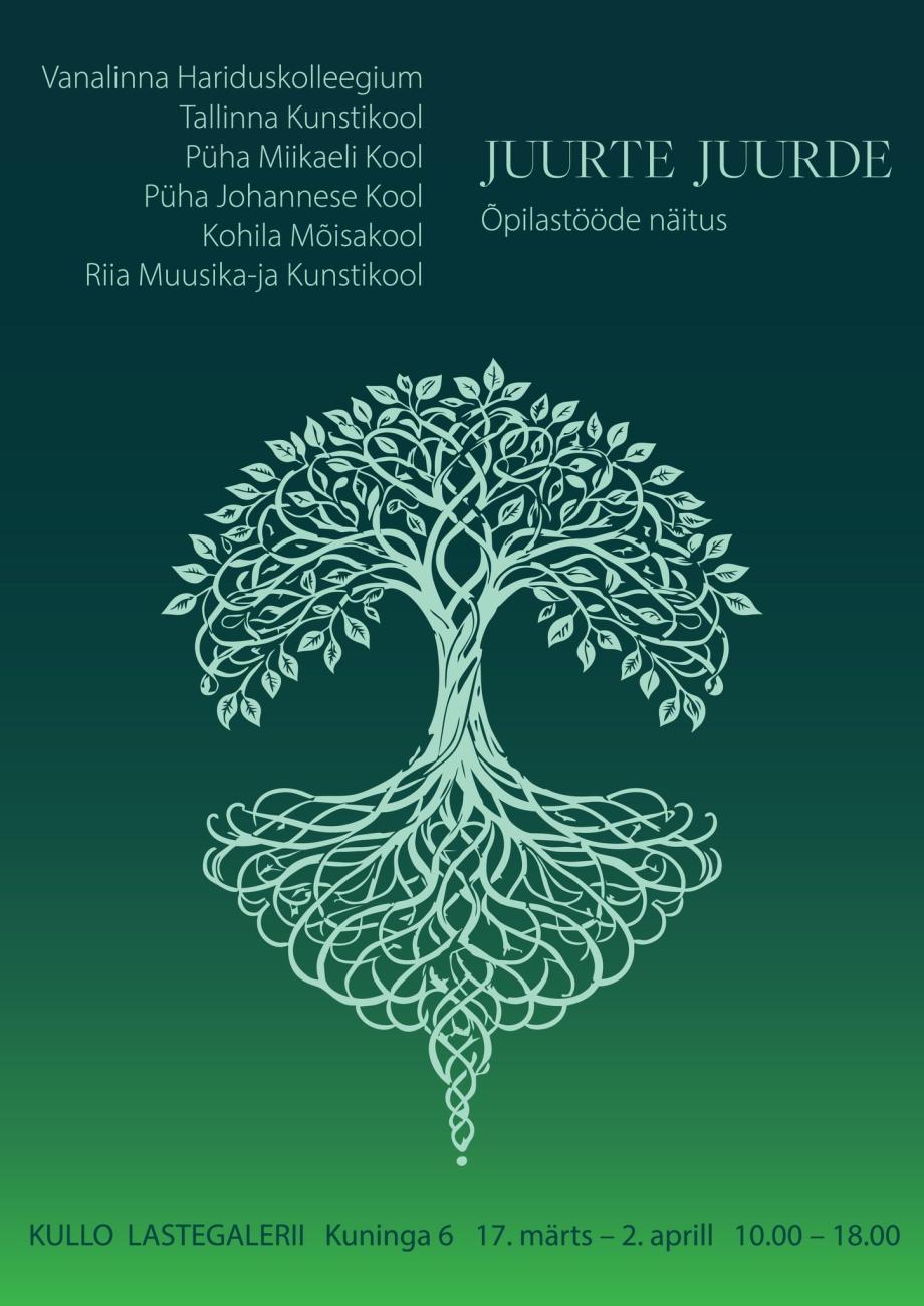 Avanes kevadiselt kepsakas ja loovusenergiast pakatav näitus „Juurte juurde“, kus saab näha õpilaste kunstitöid järgmistest koolidest: