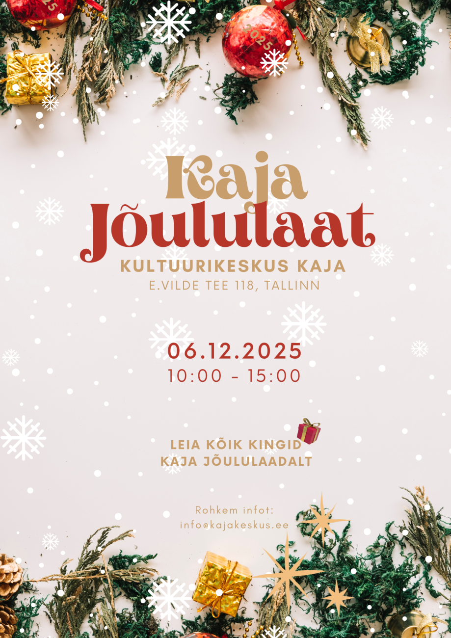 Kaja jõululaat on mõnus võimalus leida jõuluvana kingikotti vahvaid kingitusi. Toimuvad põnevad etteasted ning tulemas ka üllatusi 🙂