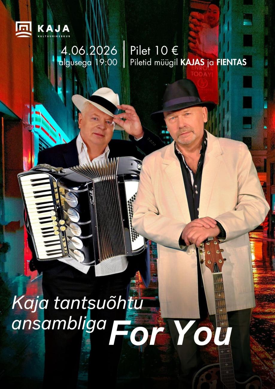 Tantsuks mängib muusikat ansambel For You! Ees ootab mõnus õhtu hea seltskonna, tuntud meloodiate ja tantsulise meeleoluga – just selline, kus saab argipäeva seljataha jätta ja muusikat ning tantsu nautida.