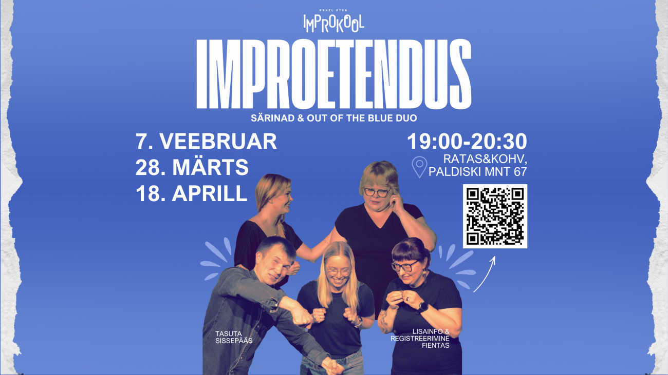 Laval on improtrupid Out of the Blue Duo ja Särinad. Kindel on see, et on põnev, naljakas ja imestamapanev, sest improtendused sünnivad publiku ees, siin ja praegu.