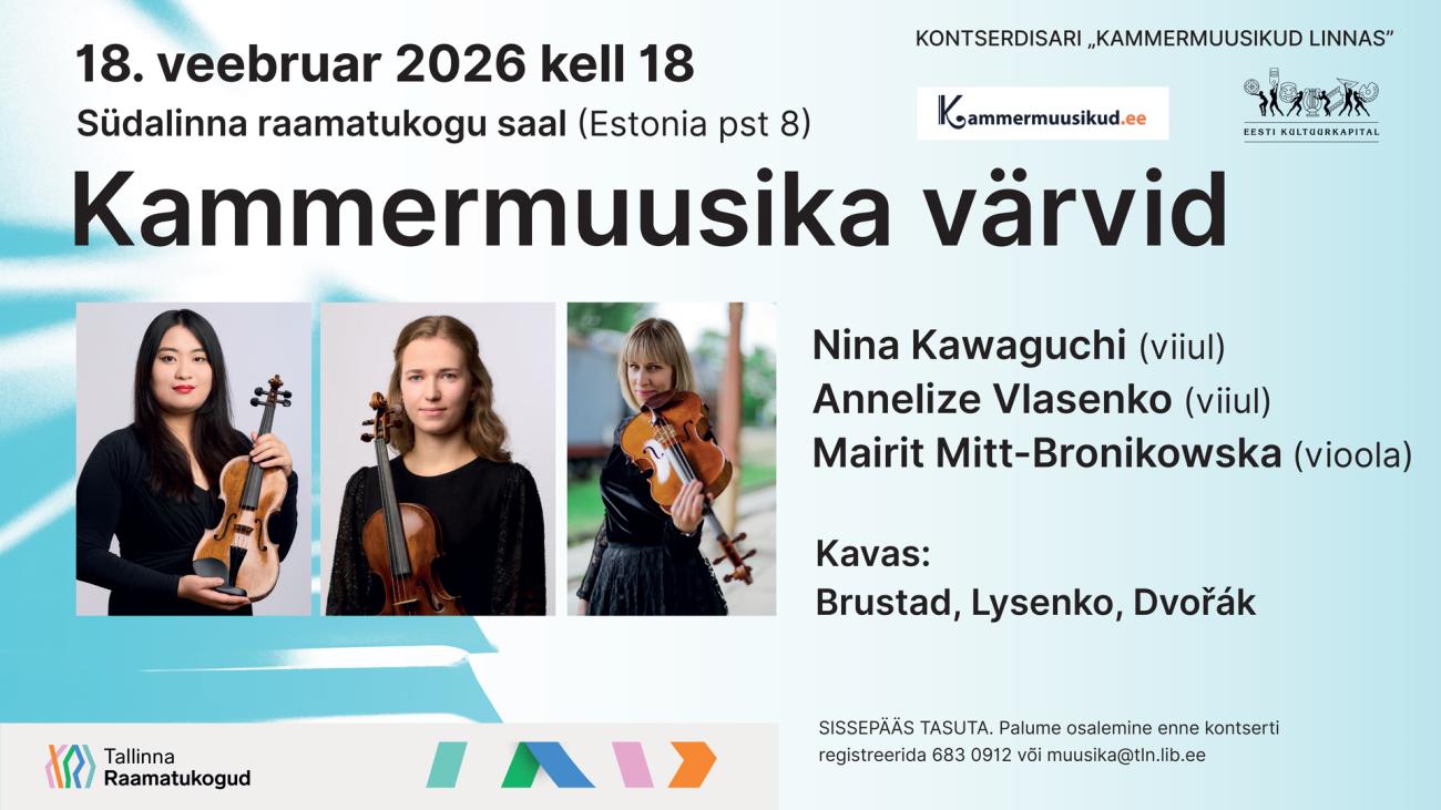 NB! Palume osalemine enne kontserti registreerida tel 683 0912 või muusika@tln.lib.ee
