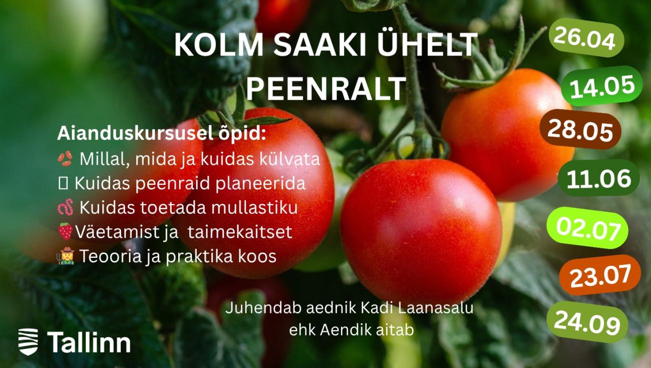 Kursusel õpid looduslähedaselt ja jätkusuutlikult väikesel alal kasvatama köögi- ja aedvilju ning seda, kuidas saada kolm saaki ühel hooajal!