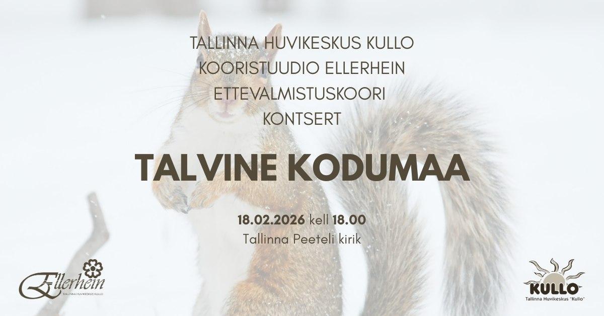๐Ž๐จ๐ญ๐š๐ฆ๐ž ๐ญ๐ž๐ข๐ ๐ครต๐ข๐ค๐ข ๐“๐š๐ฅ๐ฅ๐ข๐ง๐ง๐š ๐‡๐ฎ๐ฏ๐ข๐ค๐ž๐ฌ๐ค๐ฎ๐ฌ ๐Š๐ฎ๐ฅ๐ฅ๐จ ๐Š๐จ๐จ๐ซ๐ข๐ฌ๐ญ๐ฎ๐ฎ๐๐ข๐จ ๐„๐ฅ๐ฅ๐ž๐ซ๐ก๐ž๐ข๐ง ๐ž๐ญ๐ญ๐ž๐ฏ๐š๐ฅ๐ฆ๐ข๐ฌ๐ญ๐ฎ๐ฌ๐ค๐จ๐จ๐ซ๐ข ๐ญ๐ซ๐š๐๐ข๐ญ๐ฌ๐ข๐จ๐จ๐ง๐ข๐ฅ๐ข๐ฌ๐ž๐ฅ๐ž ๐ค๐จ๐ง๐ญ๐ฌ๐ž๐ซ๐๐ข๐ฅ๐ž "๐“๐š๐ฅ๐ฏ๐ข๐ง๐ž ๐ค๐จ๐๐ฎ๐ฆ๐š๐š", millega tรคhistame Eesti Vabariigi sรผnnipรคeva. Kontserdil laulavad Ellerheina kรตige pisemad lauljad talvest, kodust ja kodumaast, pakkudes rรตรตmu ja soojust kogu perele.