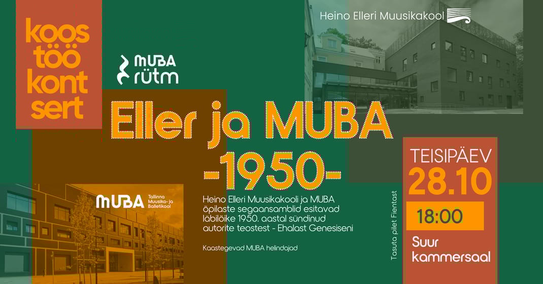 Heino Elleri Muusikakooli ja MUBA rütmimuusika õpilaste segaansamblid esitavad läbilõike 1950. aastal sündinud autorite teostest - Ehalast Genesiseni
