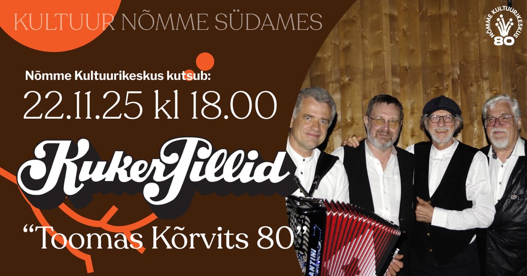 Legendaarne ansambel "Kukerpillid" tuleb Nõmme Kultuurikeskusesse esitlema oma uut heliplaati "Tomi lood ja laulud", mis on pühendatud bändi lauljale ja kitarristile Toomas Kõrvitsale, kes novembris tähistab oma 80ndat juubelit!