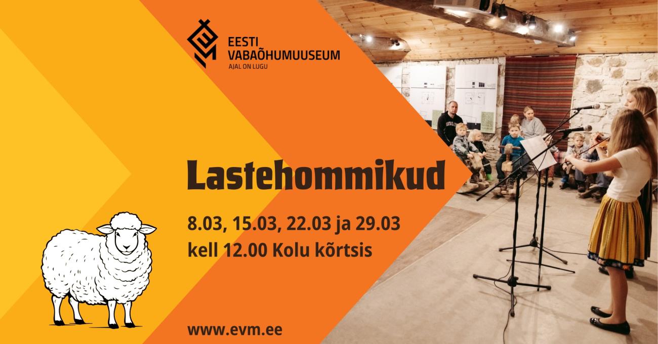 Lastehommikud toimuvad Eesti Vabaõhumuuseumi Kolu kõrtsi suures peoruumis märtsikuu pühapäevadel kell 11 -13.