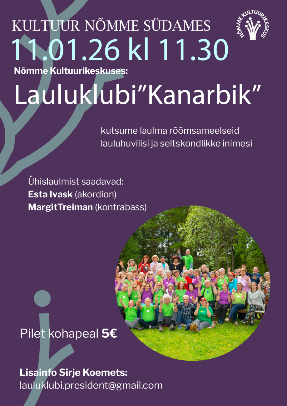 Lauluklubi „Kanarbik“ kutsub laulma rõõmsameelseid lauluhuvilisi ja seltskondlikke inimesi! Laulame ühislaule, tuletame meelde vanu ja õpime uusi!
