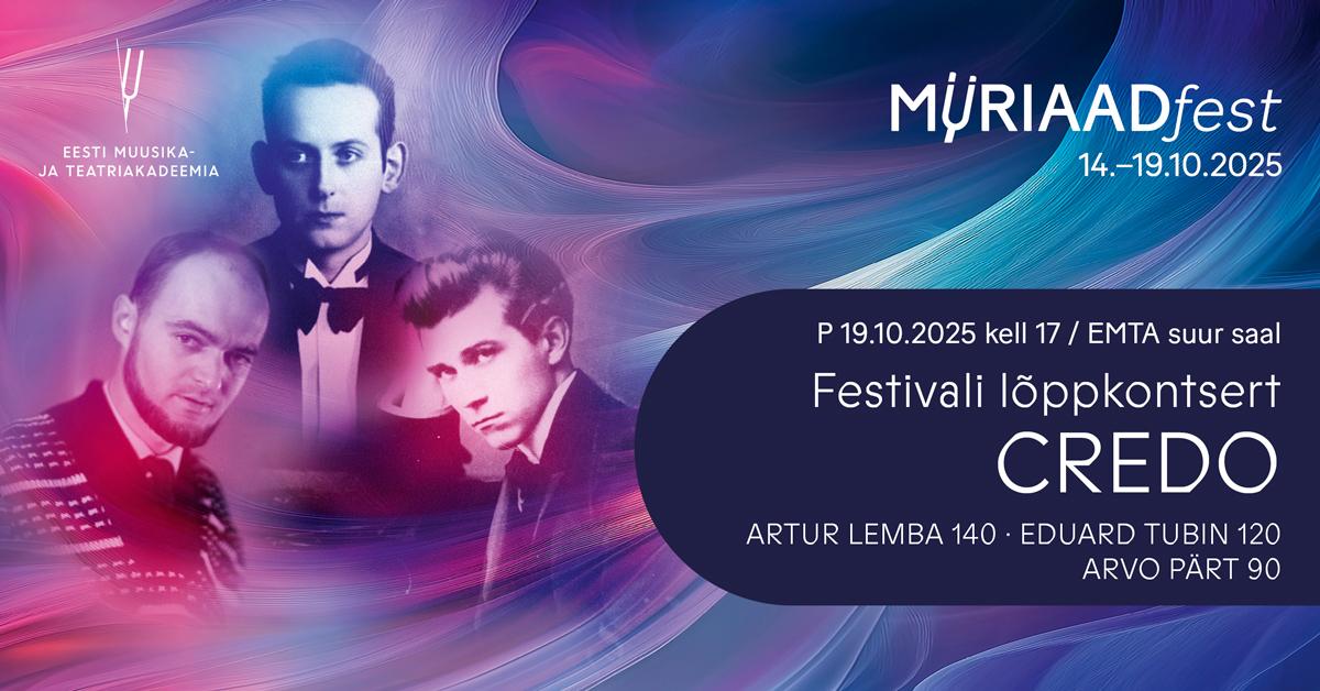 14.–19. oktoobril 2025 täidab Eesti Muusika- ja Teatriakadeemia (EMTA) saalid MÜRIAADfest – akadeemia esindusfestival, mis toob publiku ette kireva läbilõike meie tulevaste muusikute, näitlejate ja loomeuurijate tegevusest. Sel aastal on festivali fookuses Eesti heliloojad-juubilarid: Artur Lemba 140, Eduard Tubin 120, Eino Tamberg 95, Veljo Tormis 95, Arvo Pärt 90, Lepo Sumera 75 ja Olav Ehala 75.