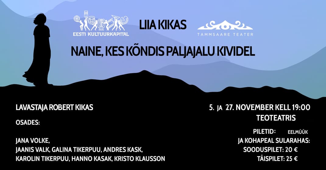 Etenduse koduleht: https://www.tammsaareteater.ee/naine-kes-kondis-paljajalu-kividel/