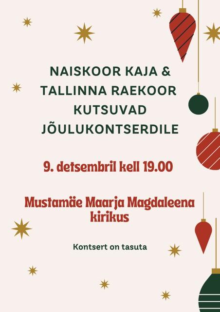 Tallinna Raekoori ja Kaja naiskoori ühine jõulukontsert toimub Mustamäe kirikus juba 9. detsembril!