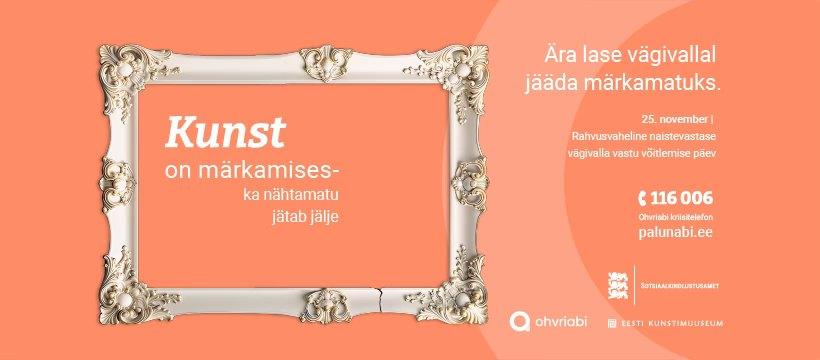 Kõigis viies Eesti Kunstimuuseumi filiaalis toimuvad 25. novembril koostöös Ohvriabiga erituurid ja vestlused, mis suunavad märkama ajaloos normaliseeritud naistevastast vägivalda läbi tänase teadlikkuse.