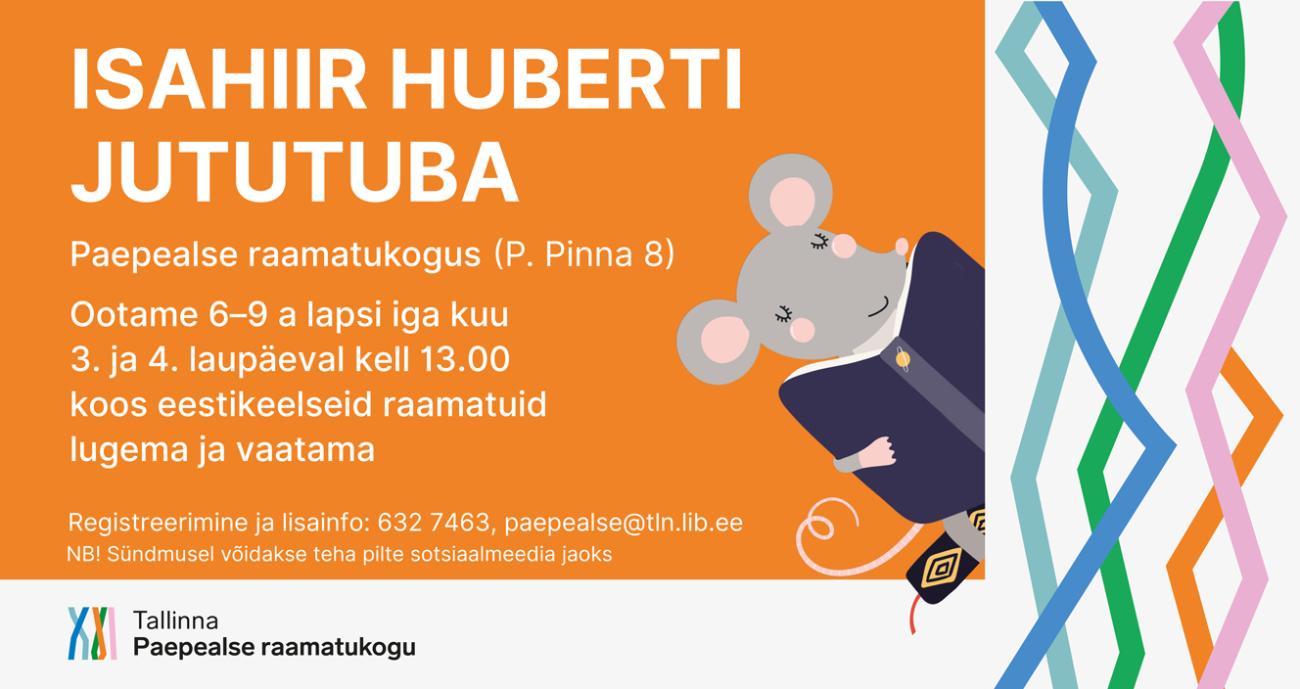 Paepealse raamatukogu (P. Pinna ootab 6-9aastasi lapsi iga kuu kolmandal ja neljandal laupäeval kell 13.00 keeleringi “Isahiir Huberti jututuba”.