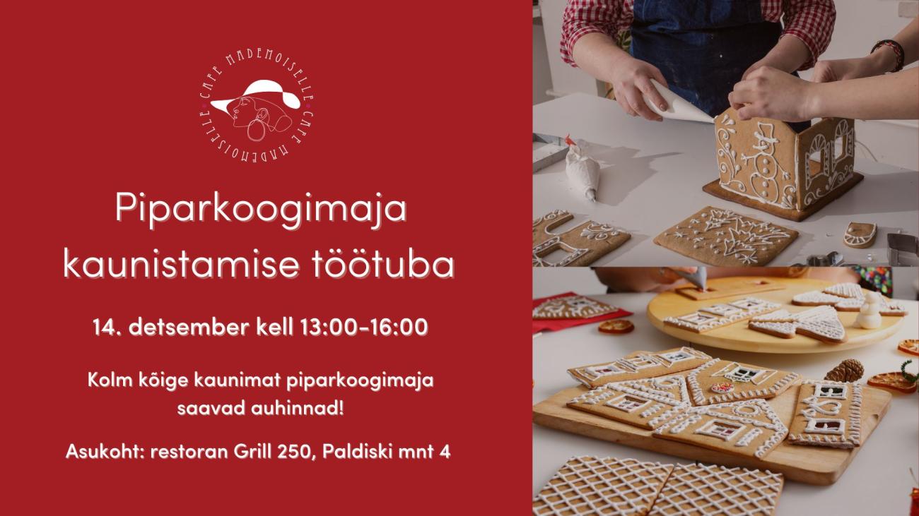 Koos meie Café Mademoiselle professionaalsete kondiitritega saad kaunistada oma piparkoogimaja ja selle koju kaasa võtta.
