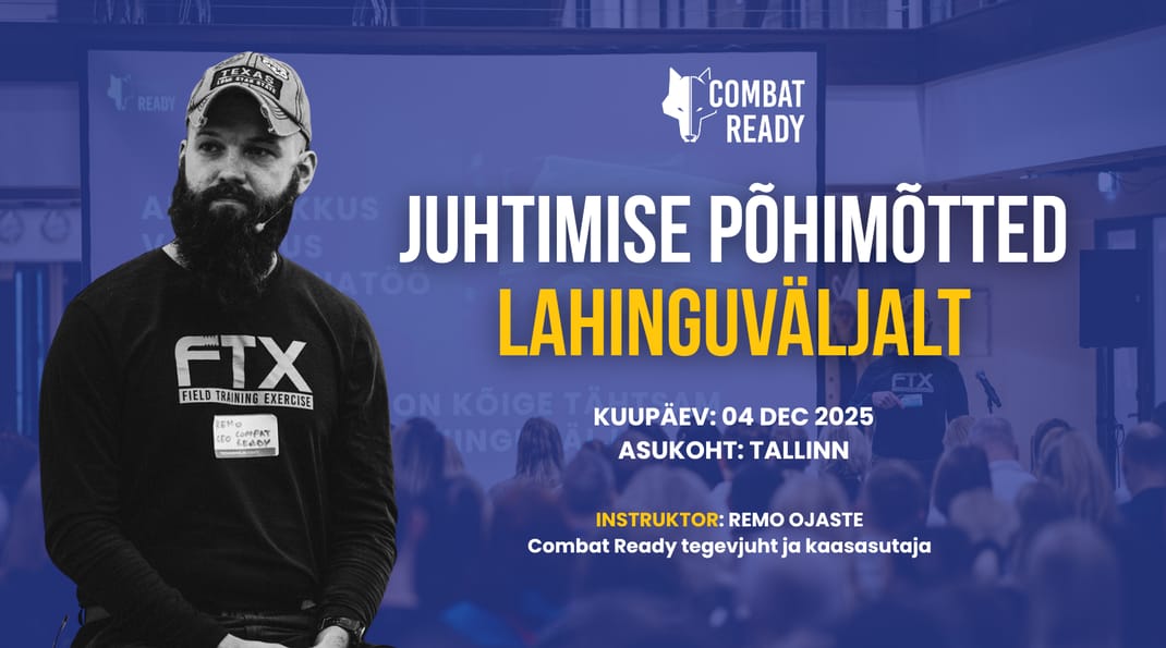 „Juhtimise põhimõtted lahinguväljalt“ on praktiline ja intensiivne juhtimiskoolitus, mis on sündinud Eesti ja USA eliitüksuslaste kogemusest ning kohandatud tänapäeva töömaailma jaoks. See koolitus näitab, kuidas teha otsuseid ka siis, kui info on puudulik, aeg surub peale ja surve on suur — ning kuidas luua meeskond, mis toimib ka kõige keerulisemates olukordades.