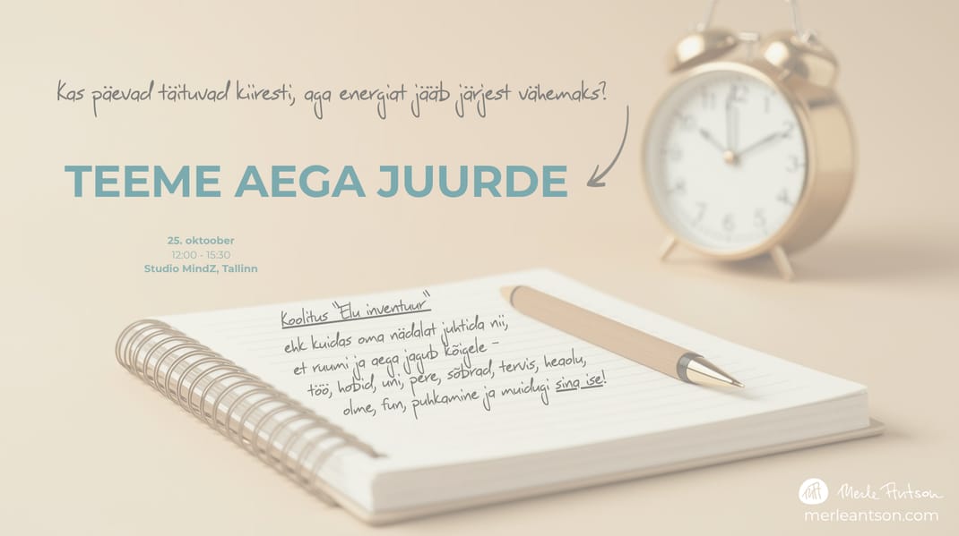 Elu inventuur on praktiline ja toetav töötuba, kus võtame aja maha, et tuua oma igapäevaellu ülevaade ja selgus.