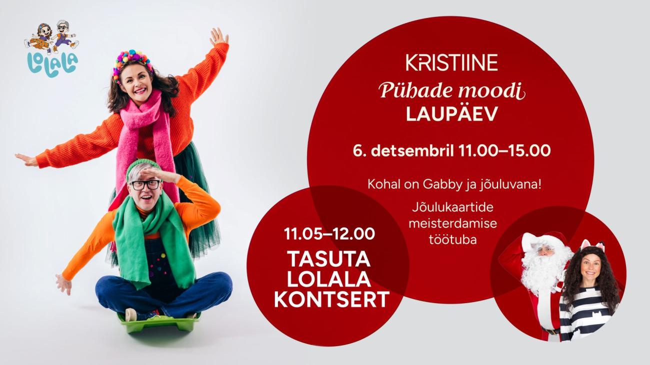 6. detsembril ootab sind Kristiine keskuse aatriumis TASUTA Lolala kontsert, Gabby ja jõuluvana!