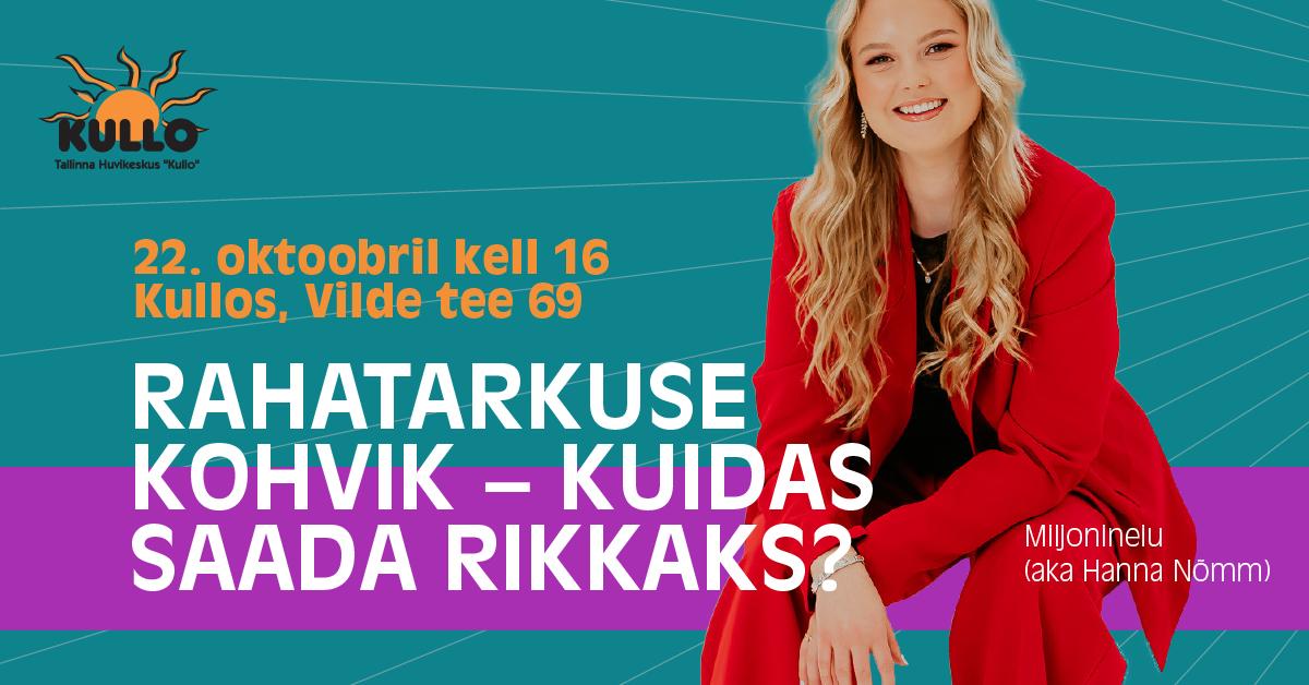 22. oktoobril kell 16.00 ootab Kullo noori esimesse Kullo rahatarkuse kohvikusse “Kuidas rikkaks saada?”, mille külaliseks on tuntud rahatarkuse ekspert Miljonineiu. Ta jagab praktilisi nippe, kuidas noorena oma raha targalt korraldada, räägib teekonnast rikkuse ja unistuste täitumiseni ning innustab astuma julgeid samme tuleviku heaks.