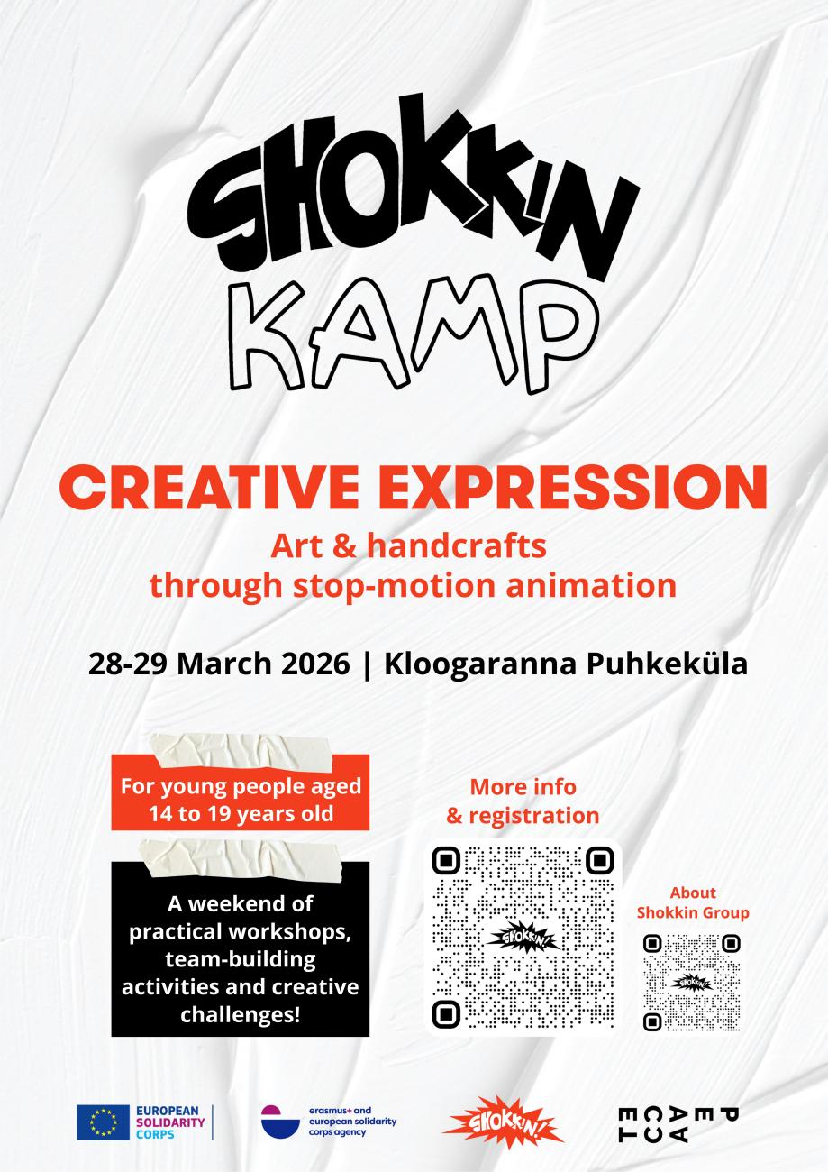 „Shokkin kamp“ on lühiajaline noortelaager, kus noored tulevad kokku mitteformaalse õppimise keskkonnas, et uurida kindlat teemat läbi praktiliste töötubade, meeskonnategevuste ja loovate väljakutsete. See on ruum õppimiseks, katsetamiseks, loomiseks, suhtlemiseks ja eneseväljenduseks toetavas ning sõbralikus õhkkonnas.