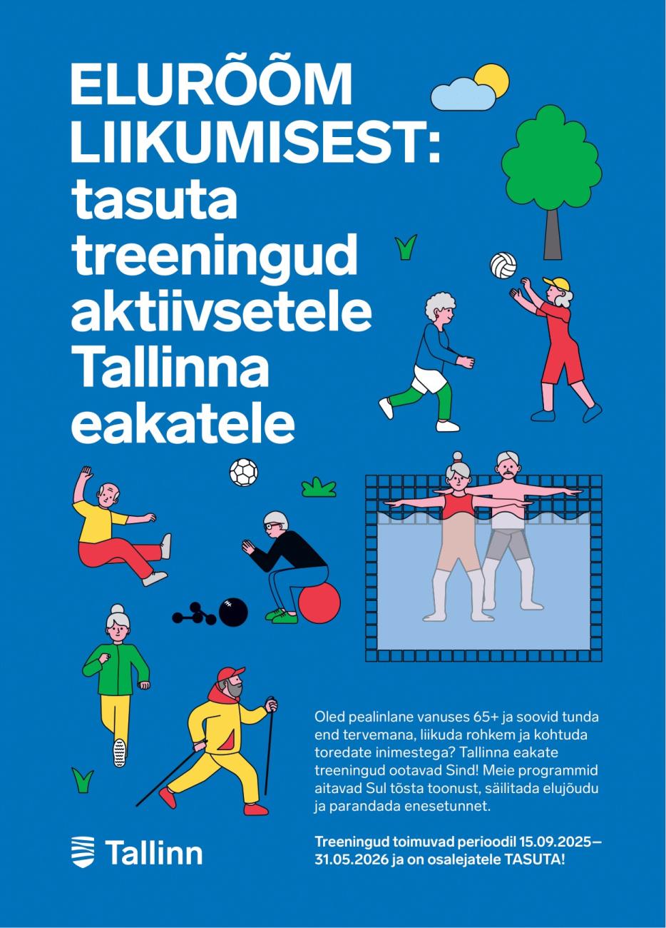 Tasuta treeningprogramm "Elurõõm liikumisest" 65+ vanuses pealinlastele.