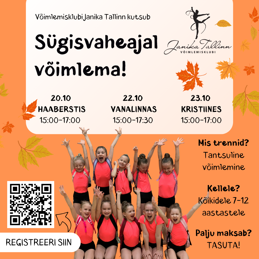Võimlemisklubi Janika Tallinn kutsub kõiki 7–12aastaseid osalema tantsulise võimlemise tasuta treeningutel koolivaheajal.