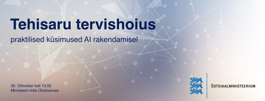 Sotsiaalministeerium kutsub kõiki Eesti tervise kogukonna liikmeid põnevale pärastlõunale ministeeriumite ühishoones, et koos adresseerida teemasid, mis AI rakendamiselt tervishoius tihti kerkivad ning vastuseta jäädes tehisaru potentsiaali kasutada ei luba. Selleks, et head lahendused leiaksid aktiivsemat kasutust, plaanime koos kuulajatega harutadalahti teemasid nagu: