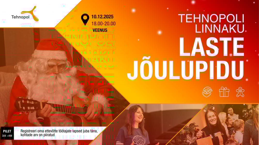 Ootame kõiki Tehnopoli linnaku ettevõtete töötajate lapsi traditsioonilisele jõulupeole, mis toimub kolmapäeval, 10. detsembril, kell 18.00 saalis Veenus (Akadeemia tee 21/1).