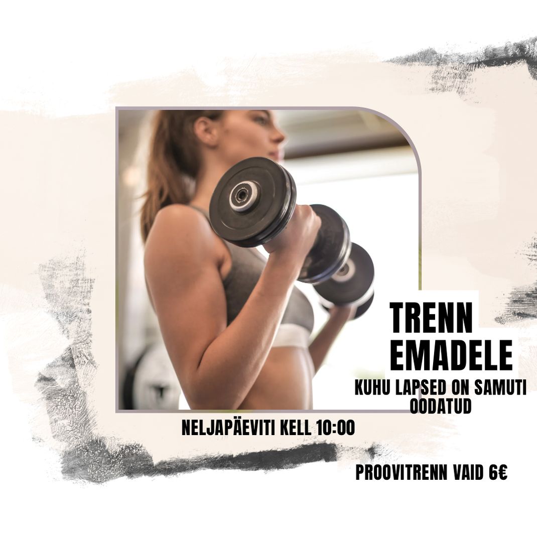Tule koos lapsega trenni! See on spetsiaalselt emadele loodud treening, mis toetab keha taastumist ja tugevnemist. Samal ajal saavad lapsed turvaliselt mängutoas mängida, emaga koos liikuda või lihtsalt tema kõrval olla. Trenn on lõbus viis, kuidas veeta kvaliteetaega oma lapsega ja kohtuda teiste ägedate naistega. Leia energiat, rõõmu ja näita ka lapsele maast madalast, et liikumine on elu loomulik ja lõbus osa!