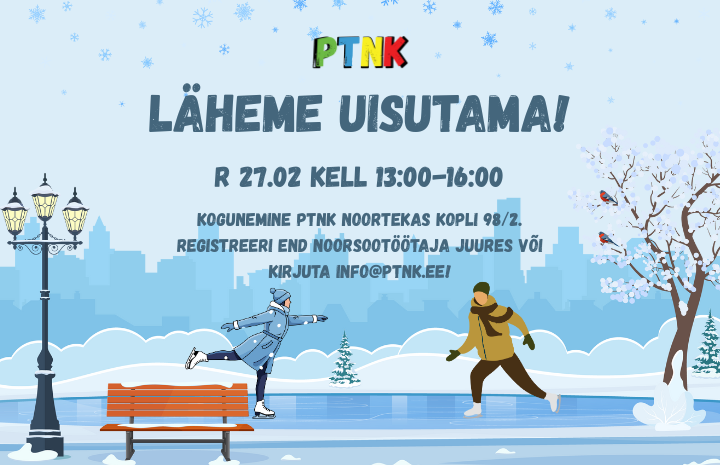 Läheme noortega uisutama Vanalinna uisuparki. Uisutamine on tore võimalus talvisel ajal liikuda ja koos aktiivselt aega veeta. Noorsootöötaja Elisabeth on varem olnud ka uisutamise treener ning õpetab noortele sel korral iluuisutamise ABC-d. Tule ja veeda mõnusalt aega talvises Tallinnas ja õpi ära uisutamise põhitõed!