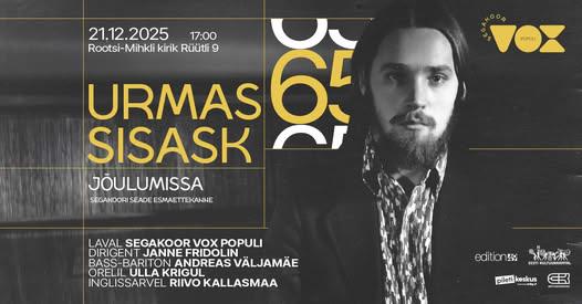 Segakoor Vox Populi tähistab sel aastal jõule Urmas Sisaski loominguga, pühendades kontserdi “Jõulumissa” Urmas Sisaski 65. sünniaastapäevale.