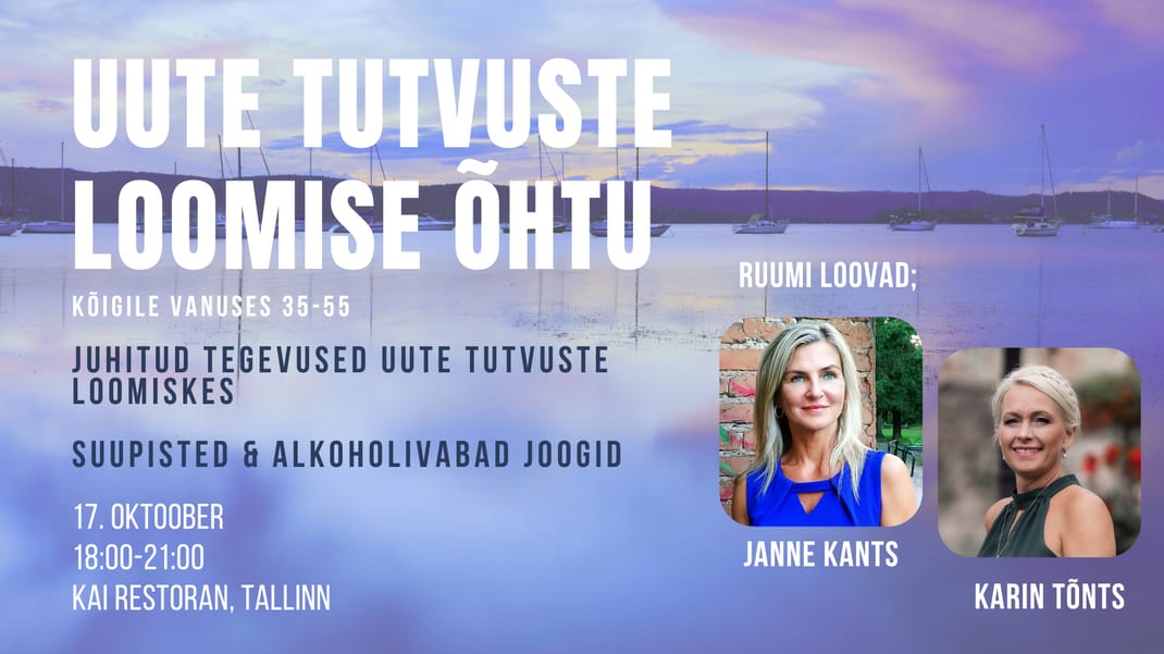 📅 Aeg ja koht: 17. oktoober, Kai Resto, Mere pst 20c, 10111 Tallinn (Linnahalli taga, imelise merevaatega)